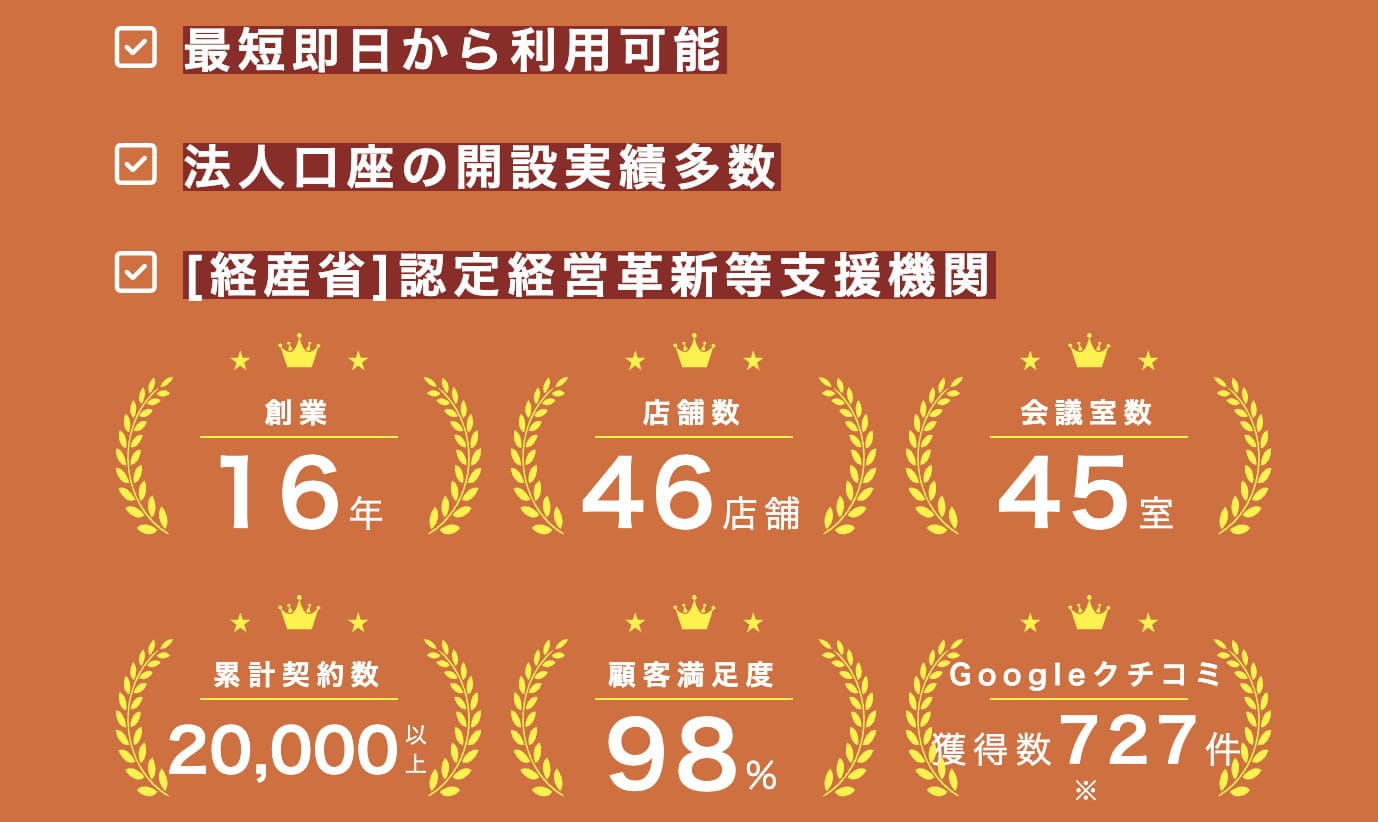 また、北海道から熊本まで店舗があるため、地方の主要都市で法人登記を予定している事業主にもおすすめのサービスと言えます。