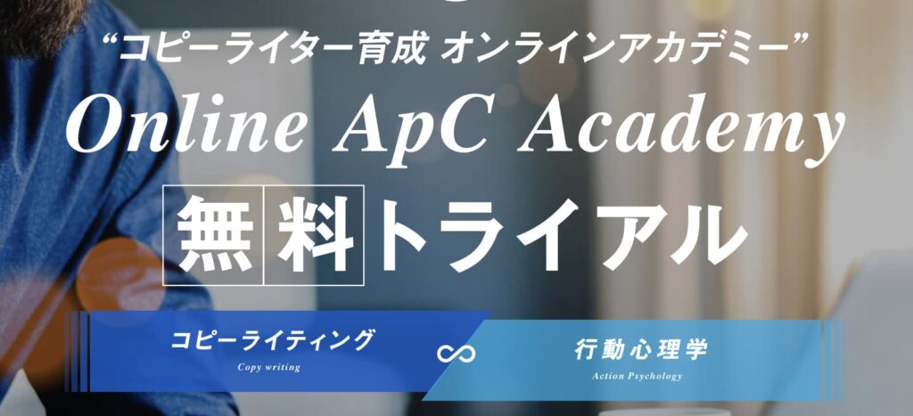 『Online ApC Academy』は、コピーライターの育成に特化したオンラインスクールです。売れるLPを作りたい方や、メルマガのCVRを上げたい方、アフィリエイトメディアの売上アップにつなげたい方におすすめです。