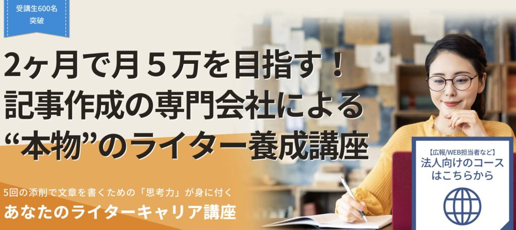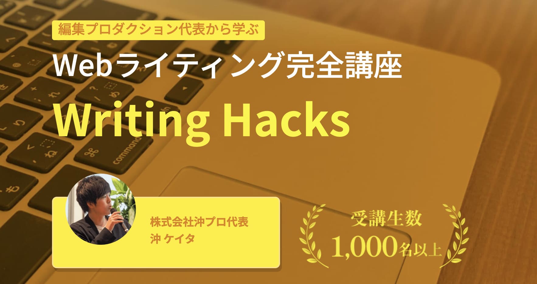 『Writing Hacks』は、オンライン完結型のWebライタースクールです。未経験から稼げるWebライターになるために必要なスキルを丁寧に教えてくれます。