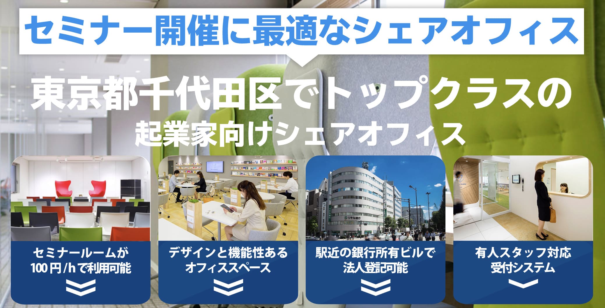 ナレッジソサエティ』は、東京都千代田区の九段下駅から徒歩30秒の場所にあるシェアオフィスであり、バーチャルオフィスサービスも提供しています。