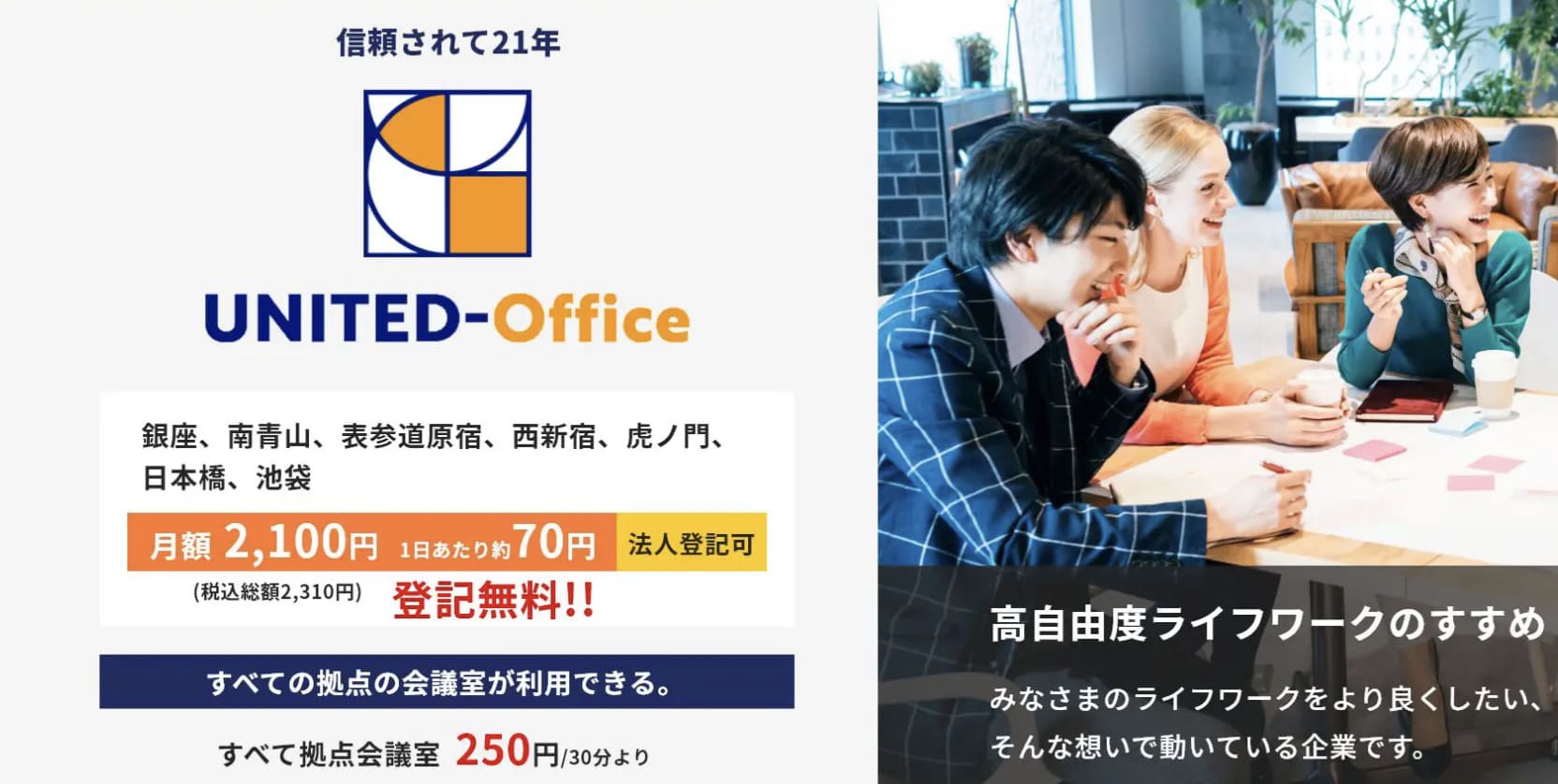 東京や地方の主要都市の一等地にある住所を、自社のオフィス住所として利用することができるのが大きな特徴です。住所利用のみのプランであれば、月額660円という低価格で利用可能です。