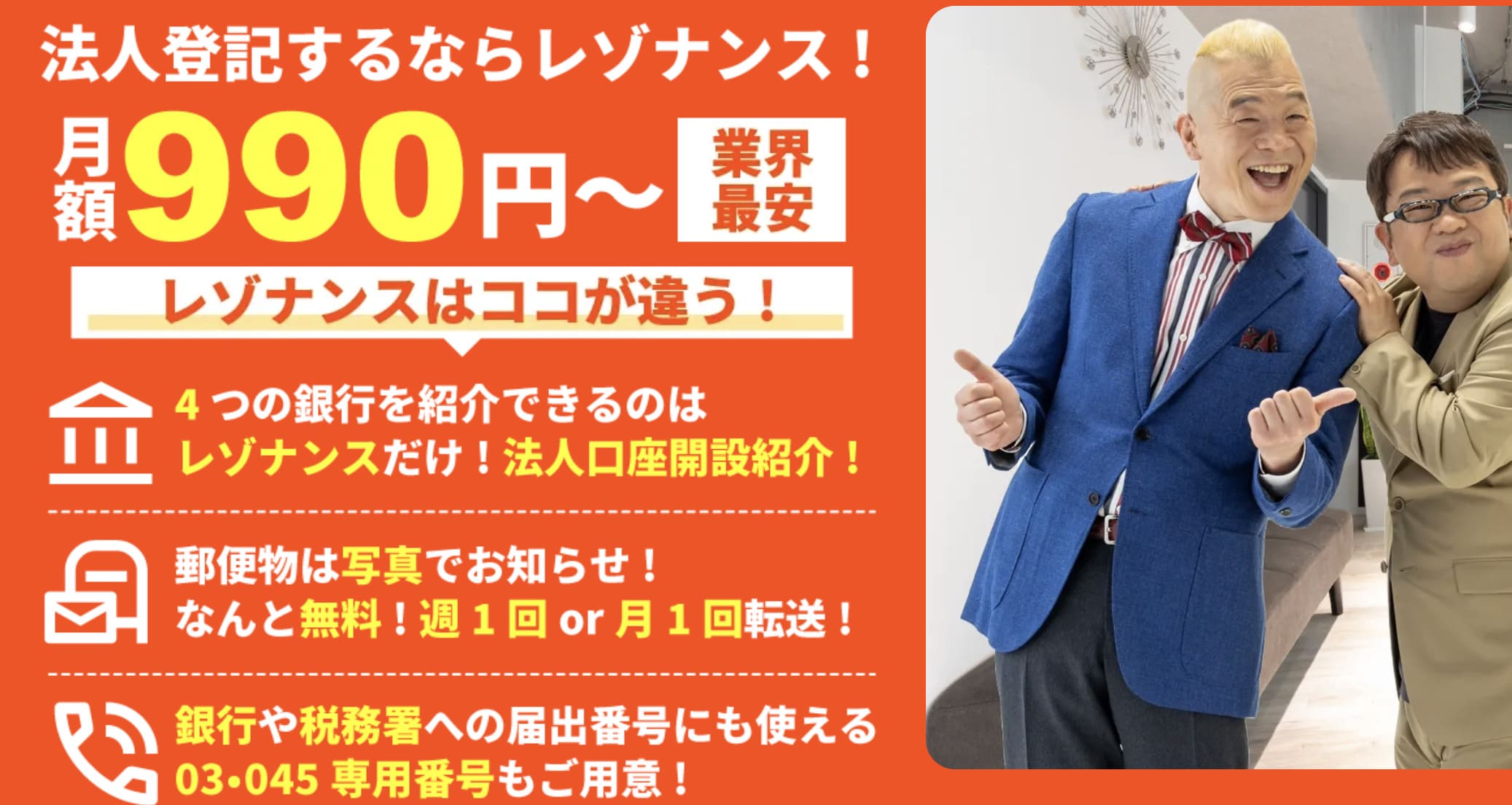 【3位】レゾナンス:東京一等地の住所を月額990円で法人登記可能