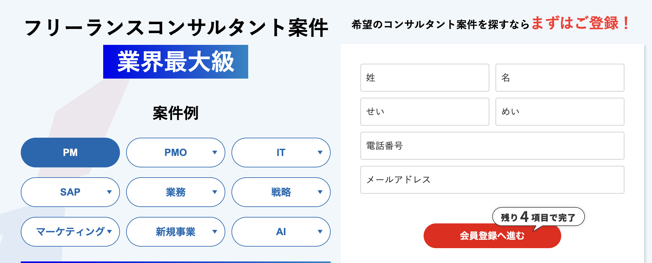 - 案件数・コンサルタント登録者数が業界No1