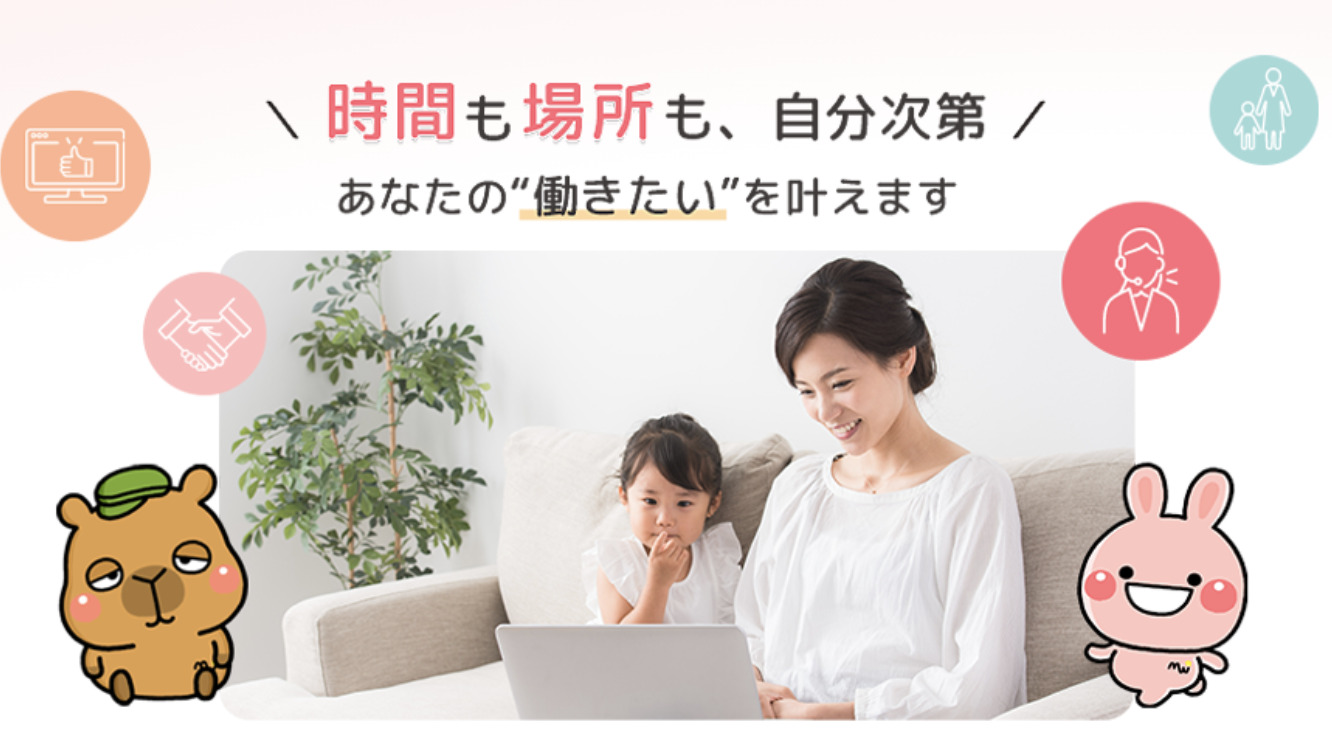 『ママワークス』は、サービス名の通り家事や育児などで外で働くことが難しい主婦の方にオススメのサービスです。ご家庭にパソコン・ネット環境が整っていない方にもおすすめできます。