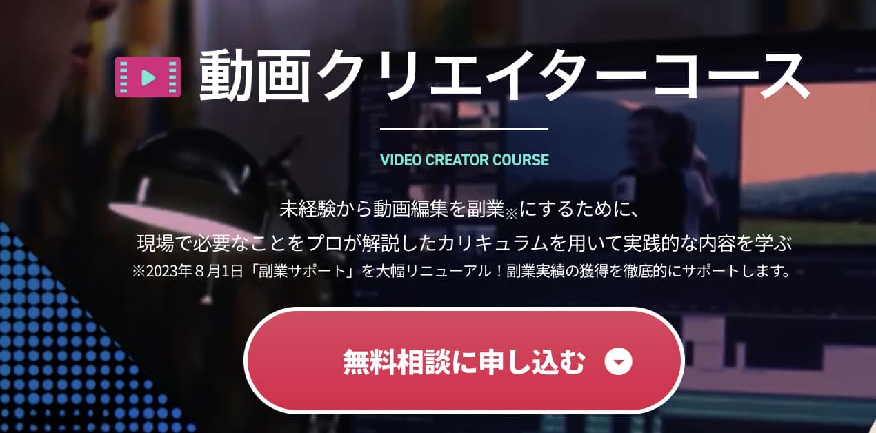 - 未経験からでも3ヶ月で稼げる動画クリエイターを目指せる