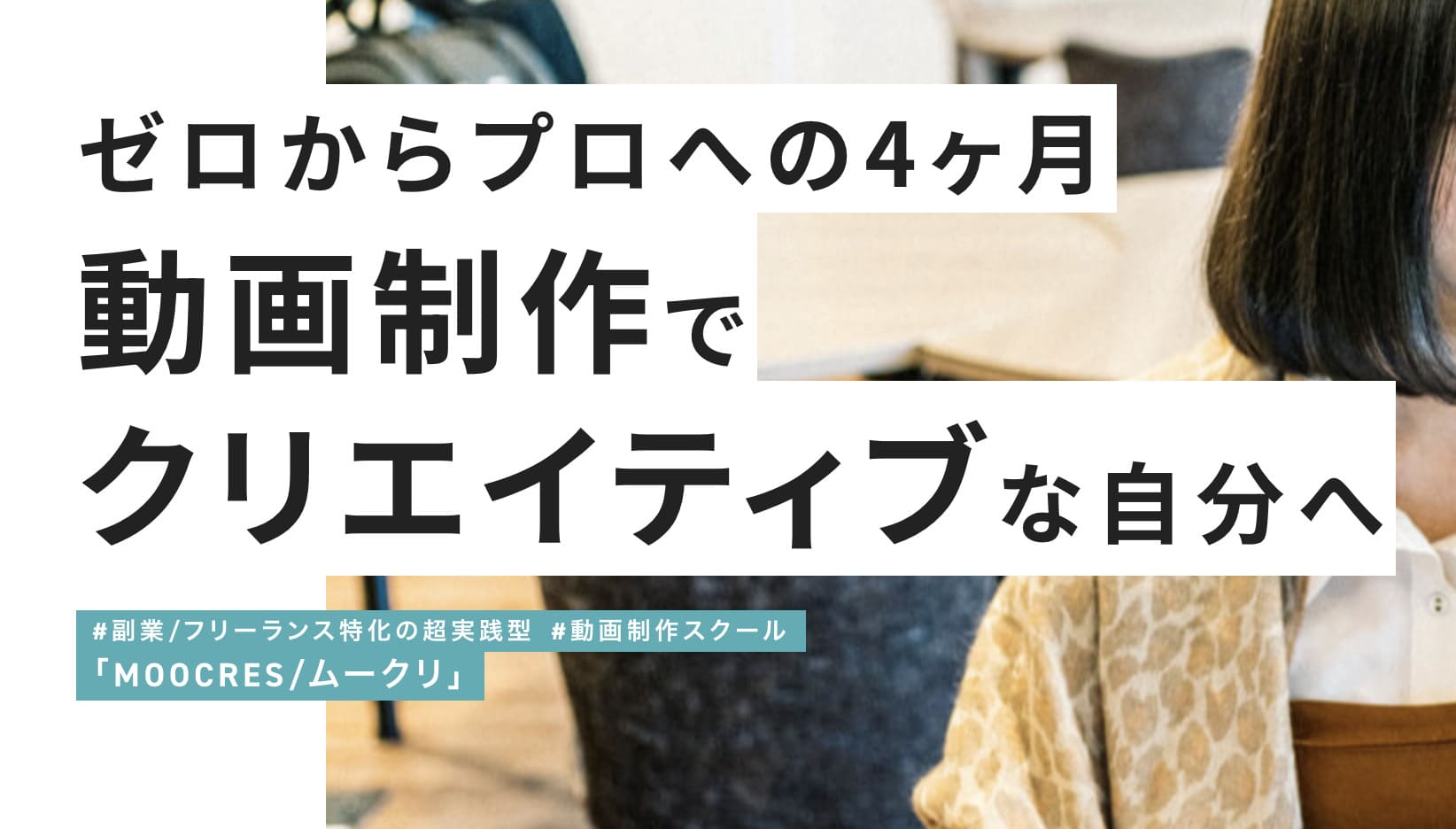 『MOOCRES』は、「超実践型・超少数精鋭型・超密着型指導」をコンセプトに掲げていて、現役の動画クリエイターとして最前線で活躍している講師から、実務に特化した編集スキルを学ぶことができます。